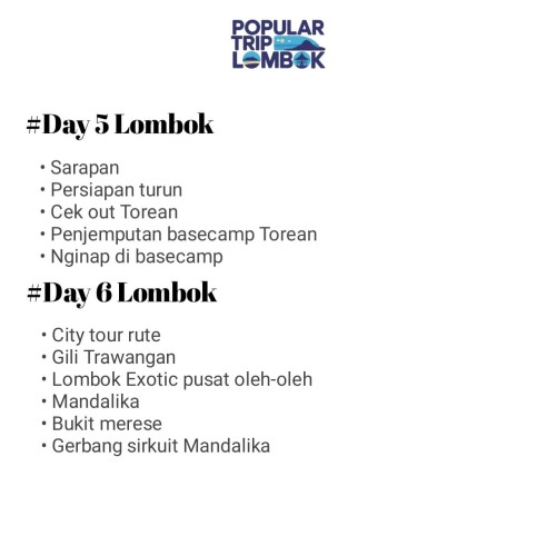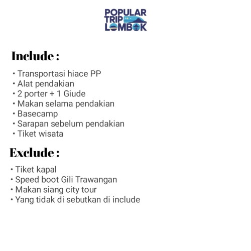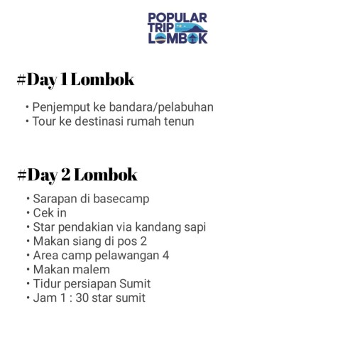 - Vendor : Popular Trip Lombok